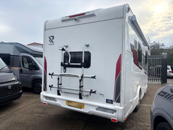 - Rimor Seal 69 2017 A 4-berth motorhome with a rear double island bed. The front dinette makes a small double. Kitchen equipped with 3 burner hob, sink, large fridge freezer, and microwave. Separate shower cubicle to the rear. Separate Thetford cassette toilet and vanity washbasin. Garage…